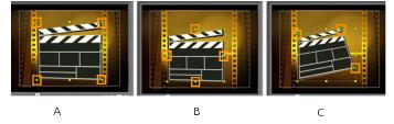 • Ziehen Sie die grünen Griffe an den Ecken, um den Clip schräg zu stellen (C).