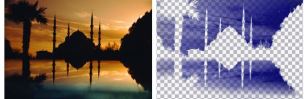 • Cualquier valor distinto de cero: aplica la máscara sin gradación. Los píxeles con una opacidad entre 1 y 255 píxeles se hacen blancos; los píxeles transparentes se hacen negros. Las áreas transparentes ocultan completamente la capa.