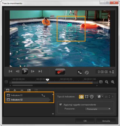La regolazione dei punti traccia consente di ottimizzare o agevolare lo spostamento di oggetti corrispondenti.