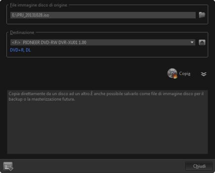 Viene visualizzata la finestra di dialogo relativa alla copia del disco.