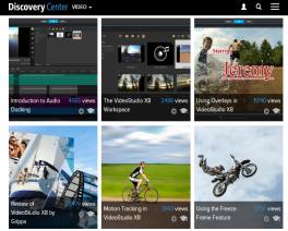 La finestra del Discovery Center (solo in lingua inglese) consente di scoprire e visualizzare numerosi video utili per conoscere meglio l'applicazione e la modifica video.