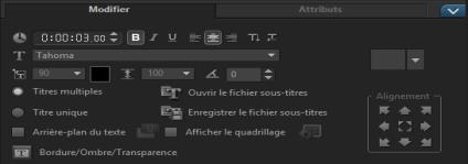 6 Il pannello Opzioni per i titoli viene visualizzato sotto le miniature nella Libreria. Utilizzare uno dei controlli per impostare il formato del testo del titolo. Ad esempio, è possibile allineare il testo e modificare il carattere, le dimensioni e il colore.