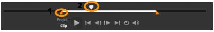3 Terminata la revisione del video, trascinare l'indicatore di ritaglio arancione dalla posizione iniziale originaria alla nuova posizione iniziale. Lo Scrubber si sposta al fotogramma selezionato e questo fotogramma viene visualizzato nella finestra Anteprima.