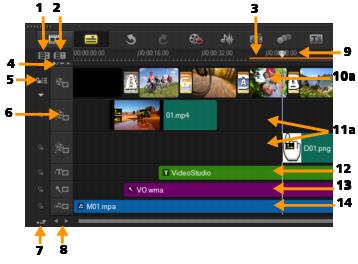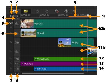 2 - Gestore tracce | Consente di gestire le tracce visibili nella linea temporale. |