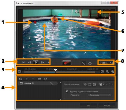 | Annulla: consente di chiudere la finestra di dialogo Traccia movimento e ignorare eventuali modifiche apportate sul video. |