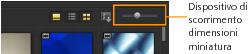 • Spostare il dispositivo di scorrimento a sinistra o destra per diminuire o aumentare la dimensione delle miniature.