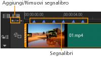 Un segnalibro può essere aggiunto anche trascinando il dispositivo di scorrimento della linea temporale nella posizione desiderata all'interno del progetto e facendo clic su Aggiungi/Rimuovi segnalibro.