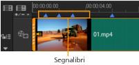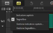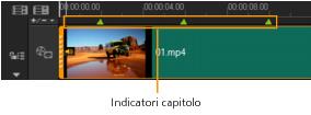 I segnalibri fungono da indicatori per aiutare a organizzare i clip multimediali in un progetto. Gli indicatori capitolo specificano i capitoli di menu disco o i collegamenti ipertestuali.