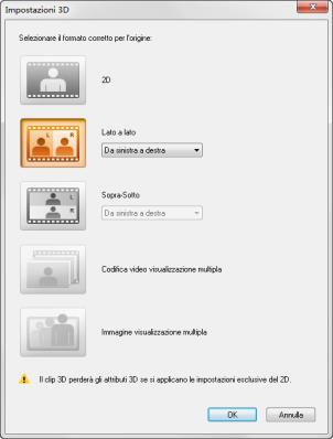 Il formato Da sinistra a destra per il 3D lato a lato è una scelta diffusa per offrire il contenuto e viene utilizzato principalmente nei clip importati o acquisiti con videocamere 3D. L'opzione Da destra a sinistra viene utilizzata principalmente nei clip multimediali acquisiti dal Web.