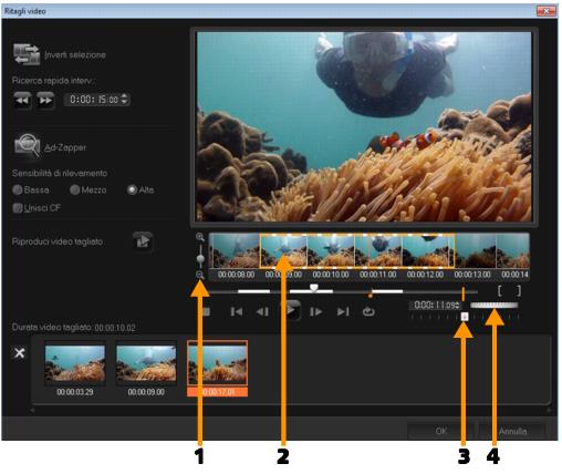 La funzione Ritagli video è un altro metodo che consente di suddividere un clip in più segmenti. Mentre l'opzione Dividi per scena viene eseguita automaticamente dal programma, Ritagli video offre un controllo completo sui clip da estrarre, rendendo ancor più semplice l'inserimento delle sole scene desiderate.