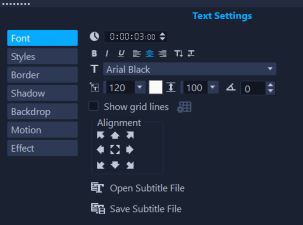 6 On the Text Settings page of the Options panel, click the Font button, and use any of the controls to format your title text. For example, you can align the text and change the font, size, and color.