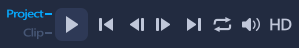 ナビゲーションエリアの[再生]ボタンは、プロジェクト全体の再生と、選択したクリップの再生の 2 つの目的に使用できます。