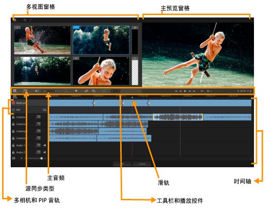 以下图像展示了多相机编辑器的主要功能。