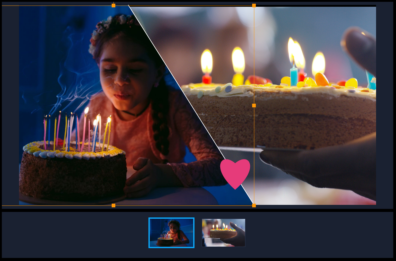 您可以轻松在会声会影中创建分屏视频,以便在预置或自定义模板中播放多个视频。自定义选项包括关键帧,可帮助您创建包含动作的动态模板。
